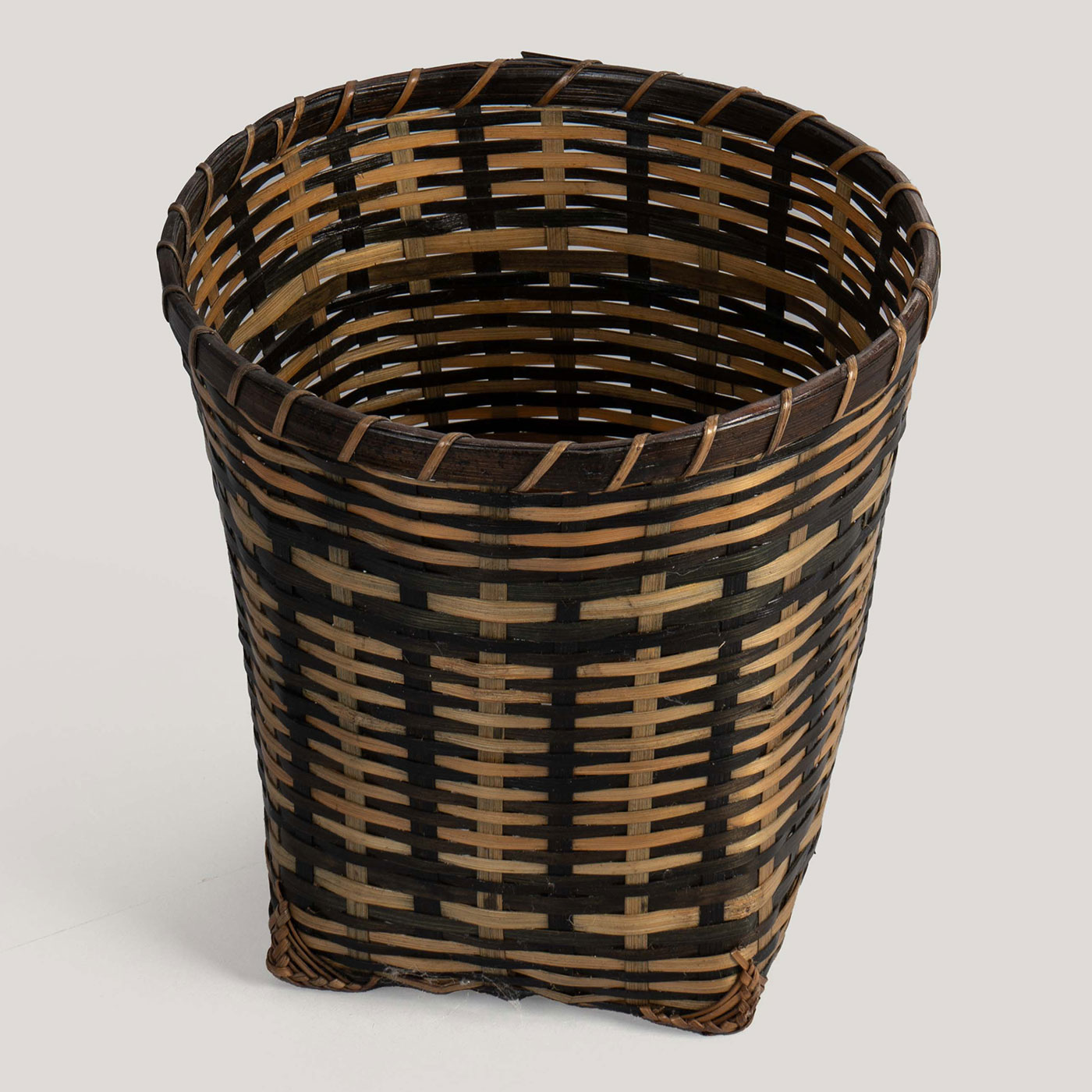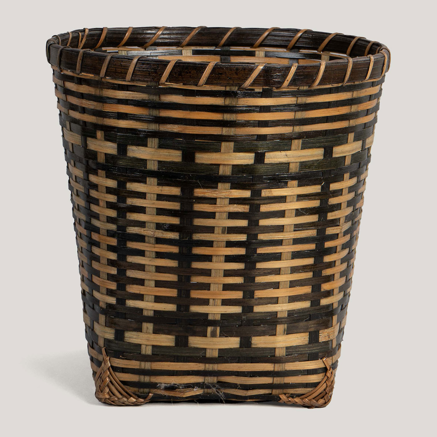 This stunning laundry basket is handwoven from natural and black cane, creating a striking woven design. Its spacious structure and sturdy build make it both functional and stylish, adding a modern, artisanal touch to your space. Perfect for organizing with elegance.