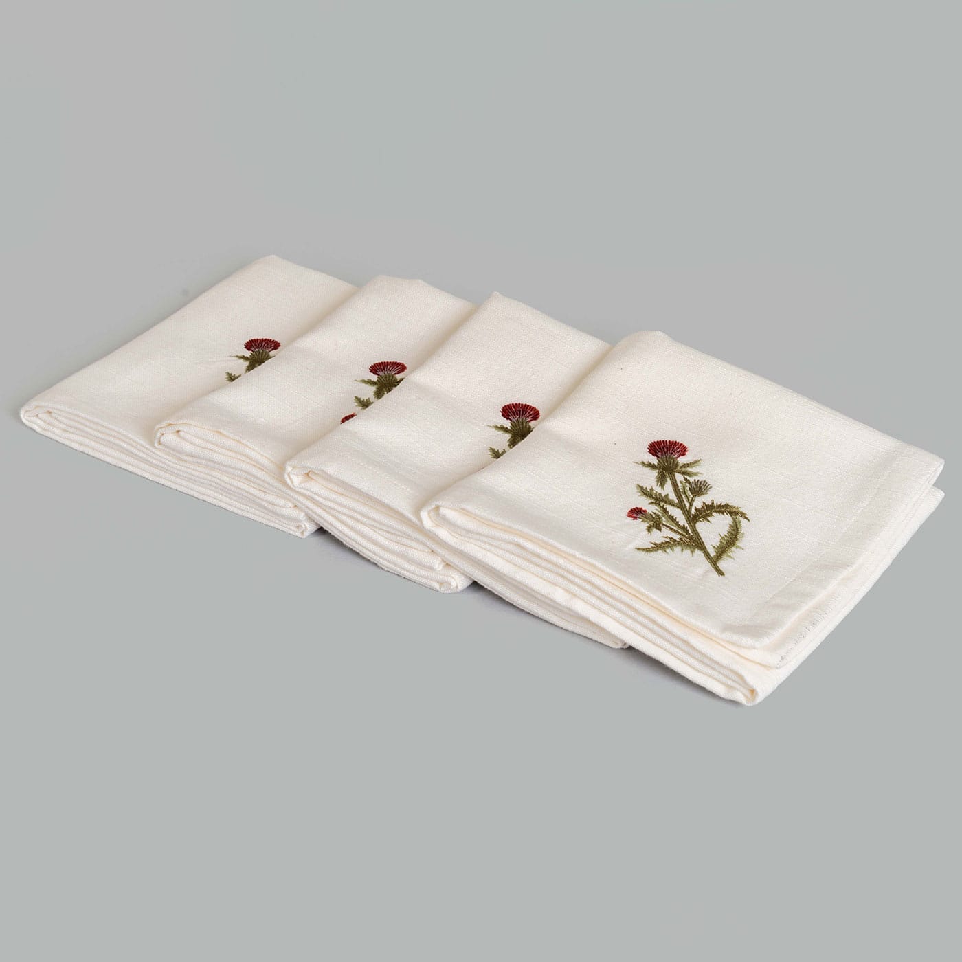 Bud Ivory Hand Embroidered 10’s Cotton Slub Napkin (Set Of 4)