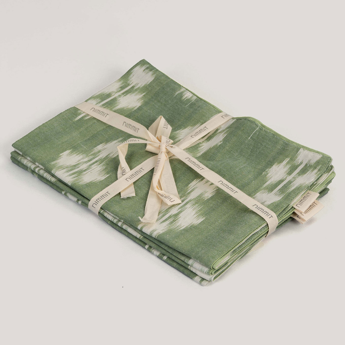 This set of four sage green table mats features a classic Ikat design, combining elegance with durability. Perfect for everyday meals or festive gatherings, they bring a refined and artisanal touch to your dining table.