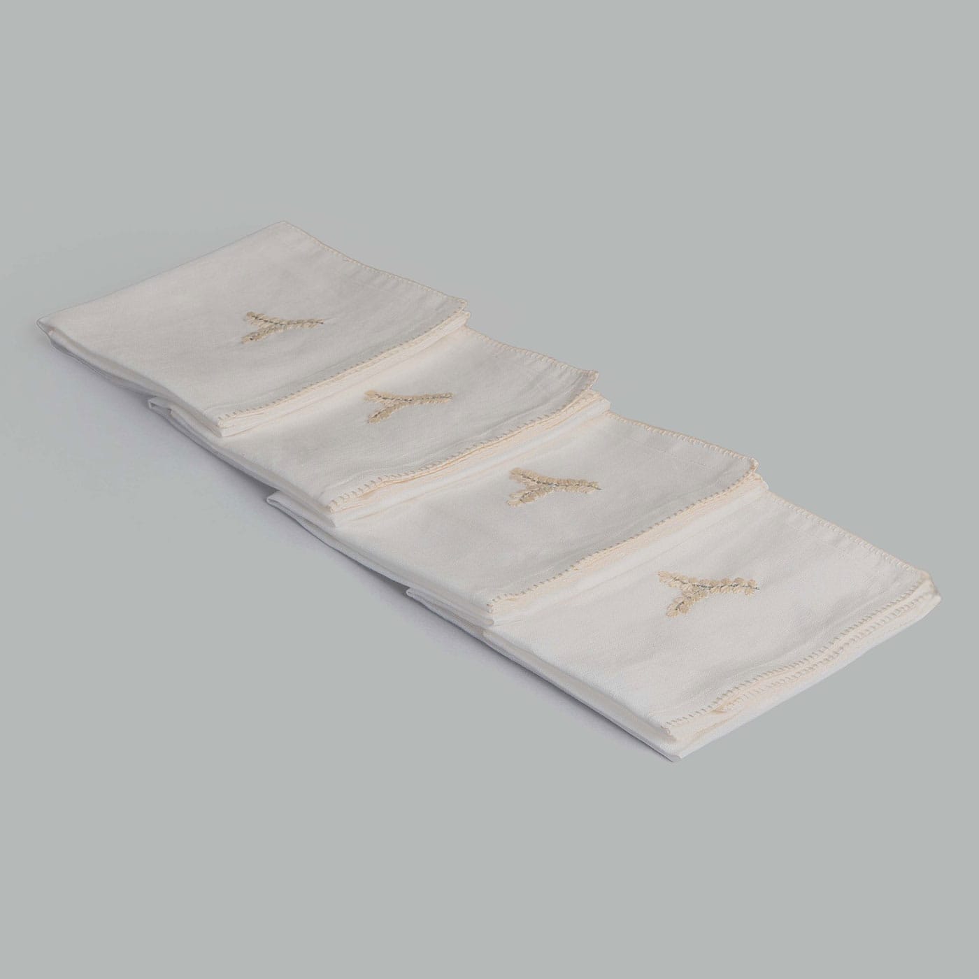 Maize Ivory Hand Embroidered Linen Napkin (Set Of 4)