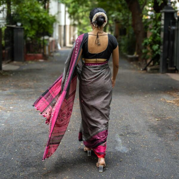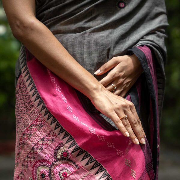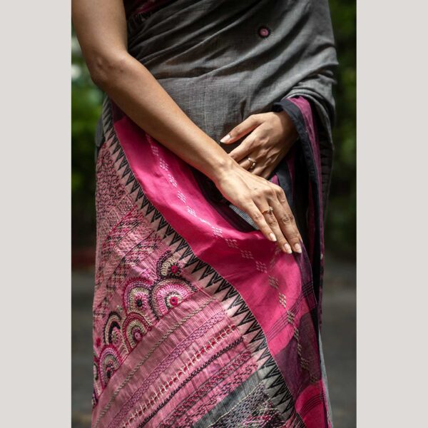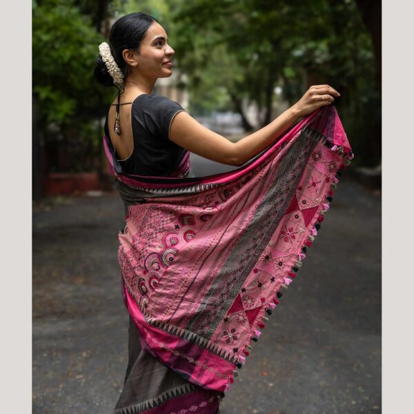 Malavika Charcoal Banjara Hand Embroidered 100% Cotton Saree - Image 4