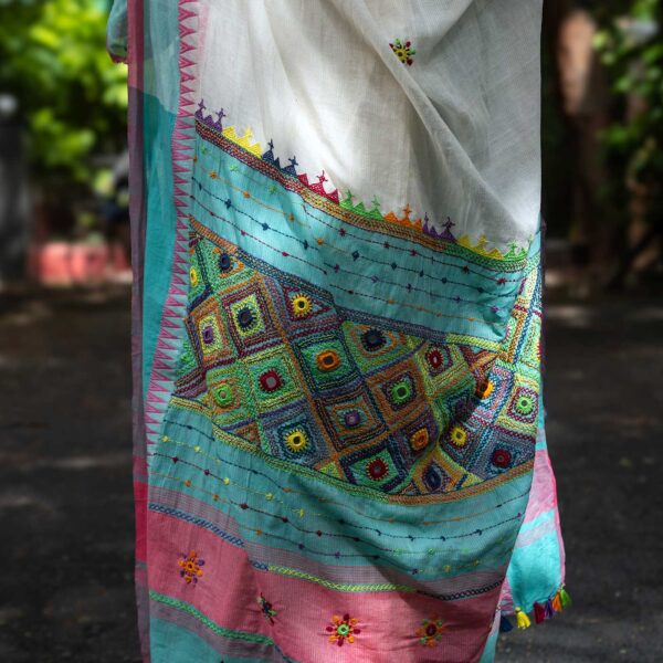 Mayavi Ivory Banjara Hand Embroidered 100% Cotton Saree