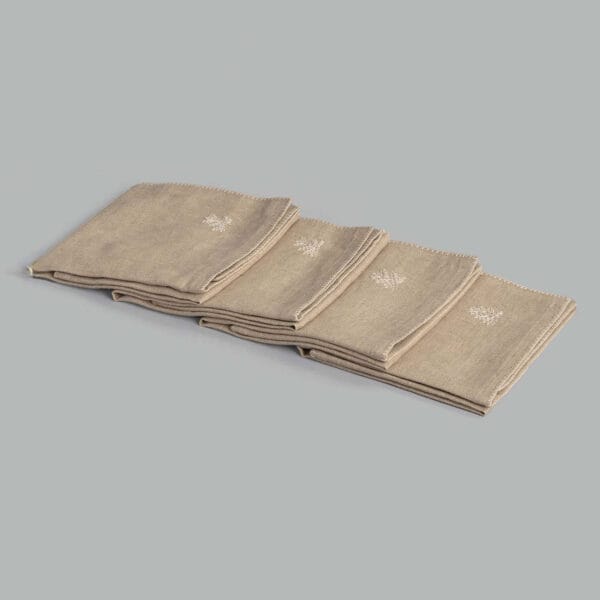 • Palak Natural Hand Embroidered Cotton Linen Natural Napkin (Set Of 4)