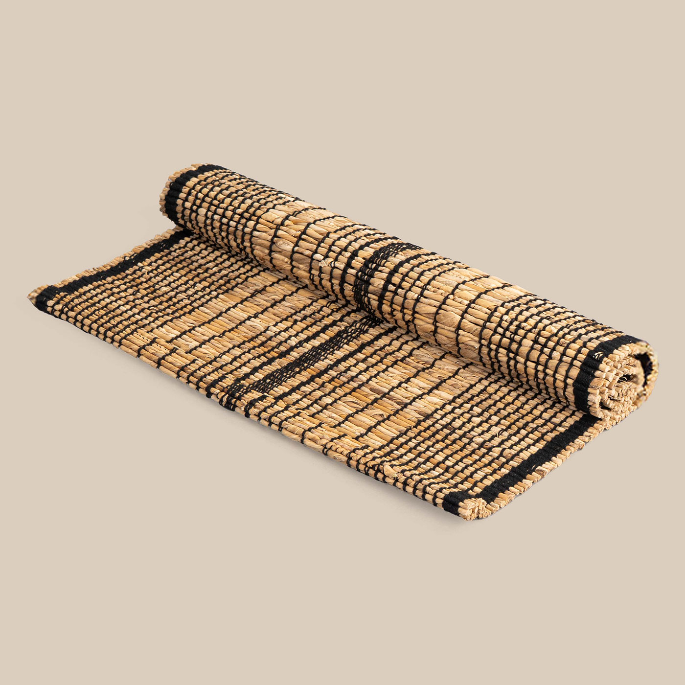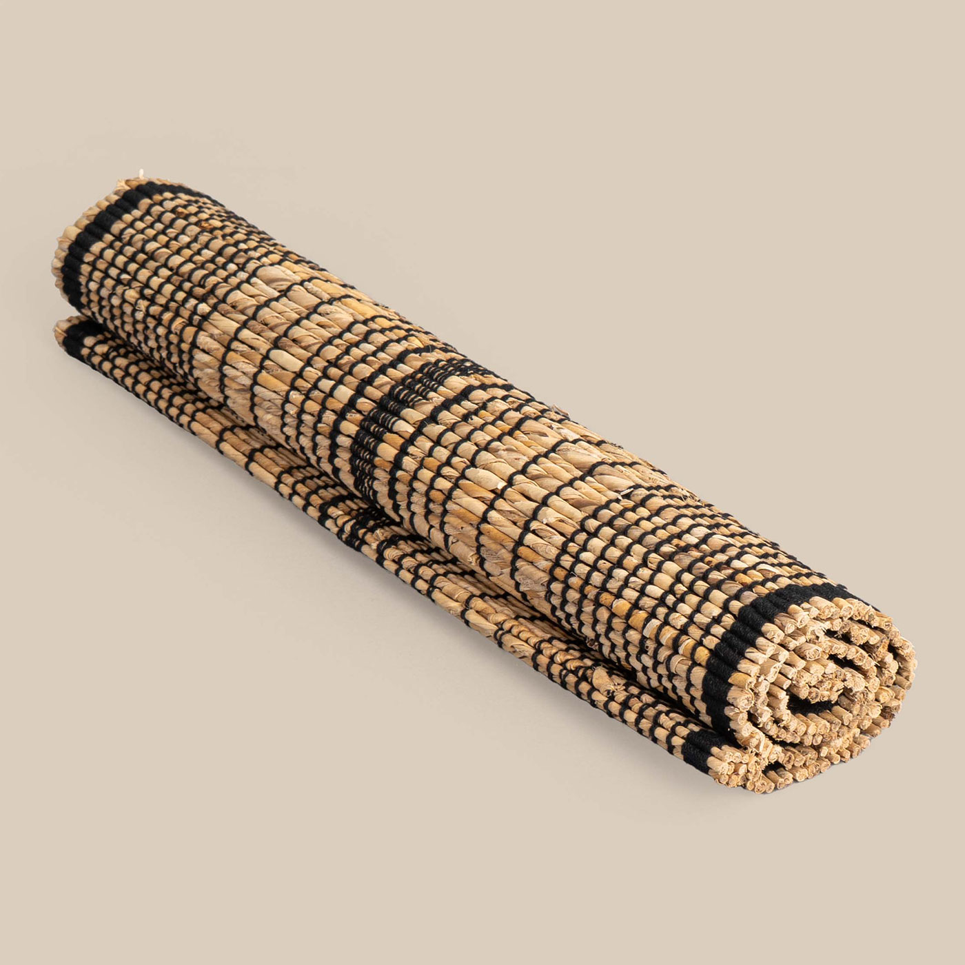 This table mat in black, white, and ecru tones blends classic contrast with subtle warmth. Made from repurposed materials, it adds an elegant yet sustainable touch to any dining setting.