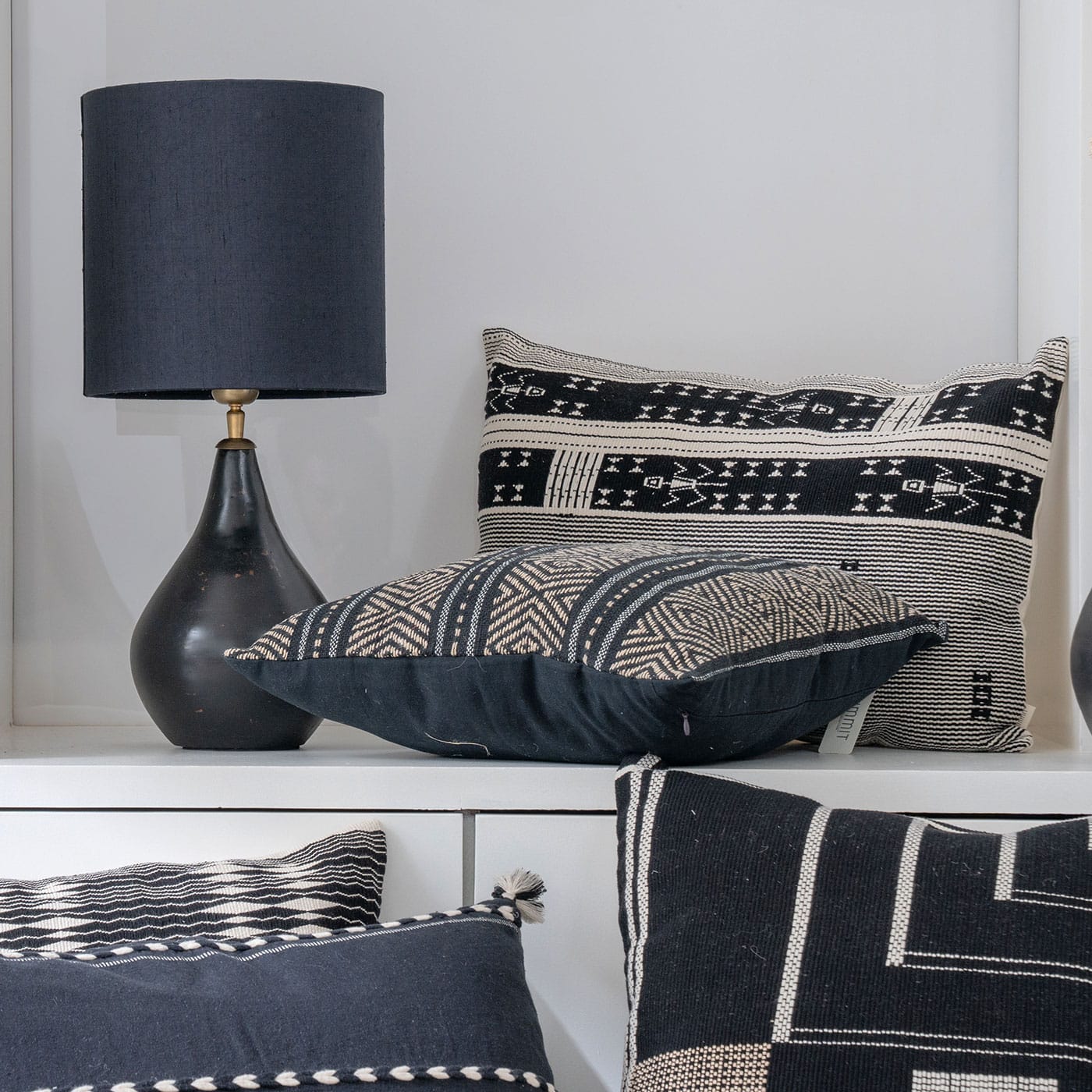 • Shah Black / Ivory Handwoven Cushion Cover