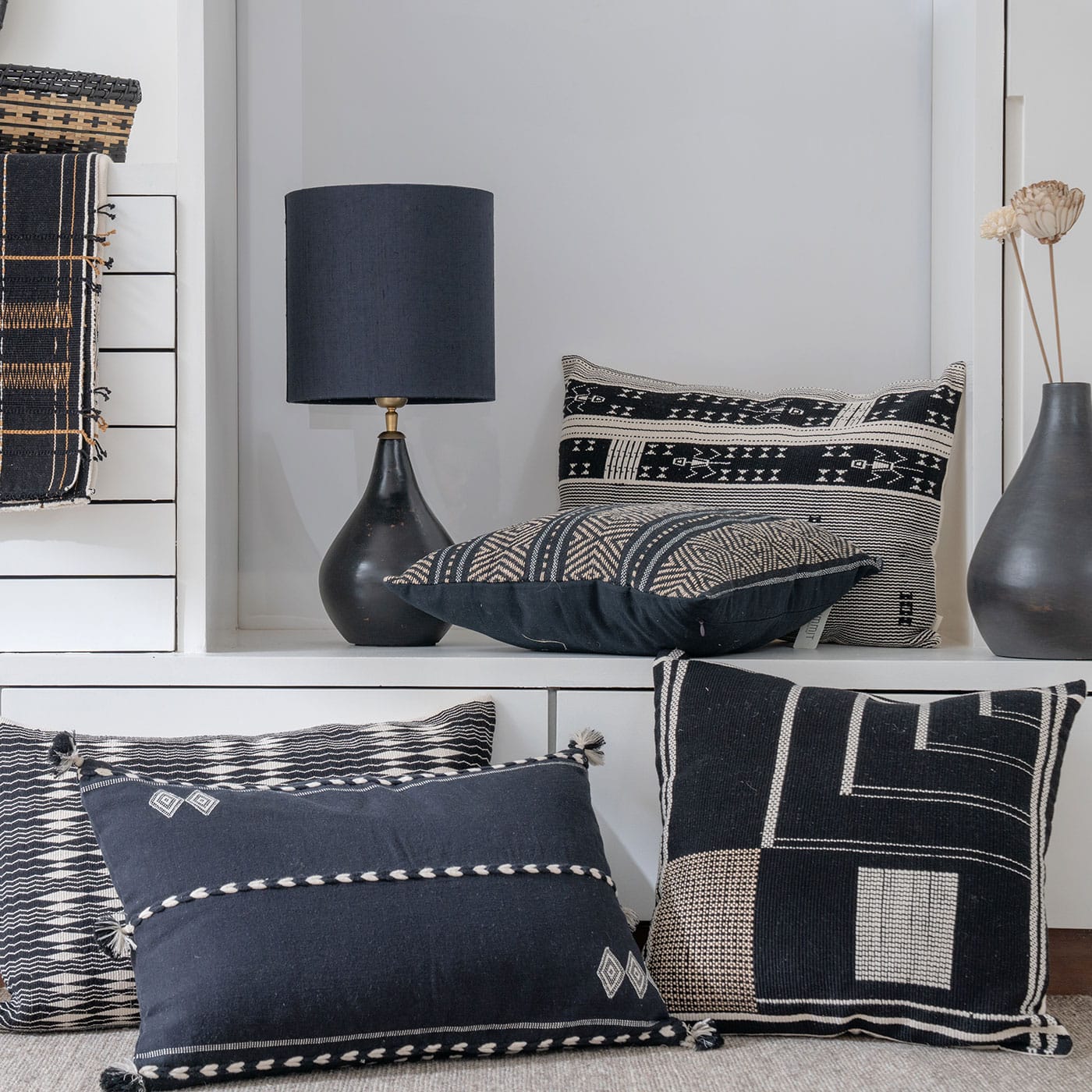 Shah Black / Ivory Handwoven Cushion Cover