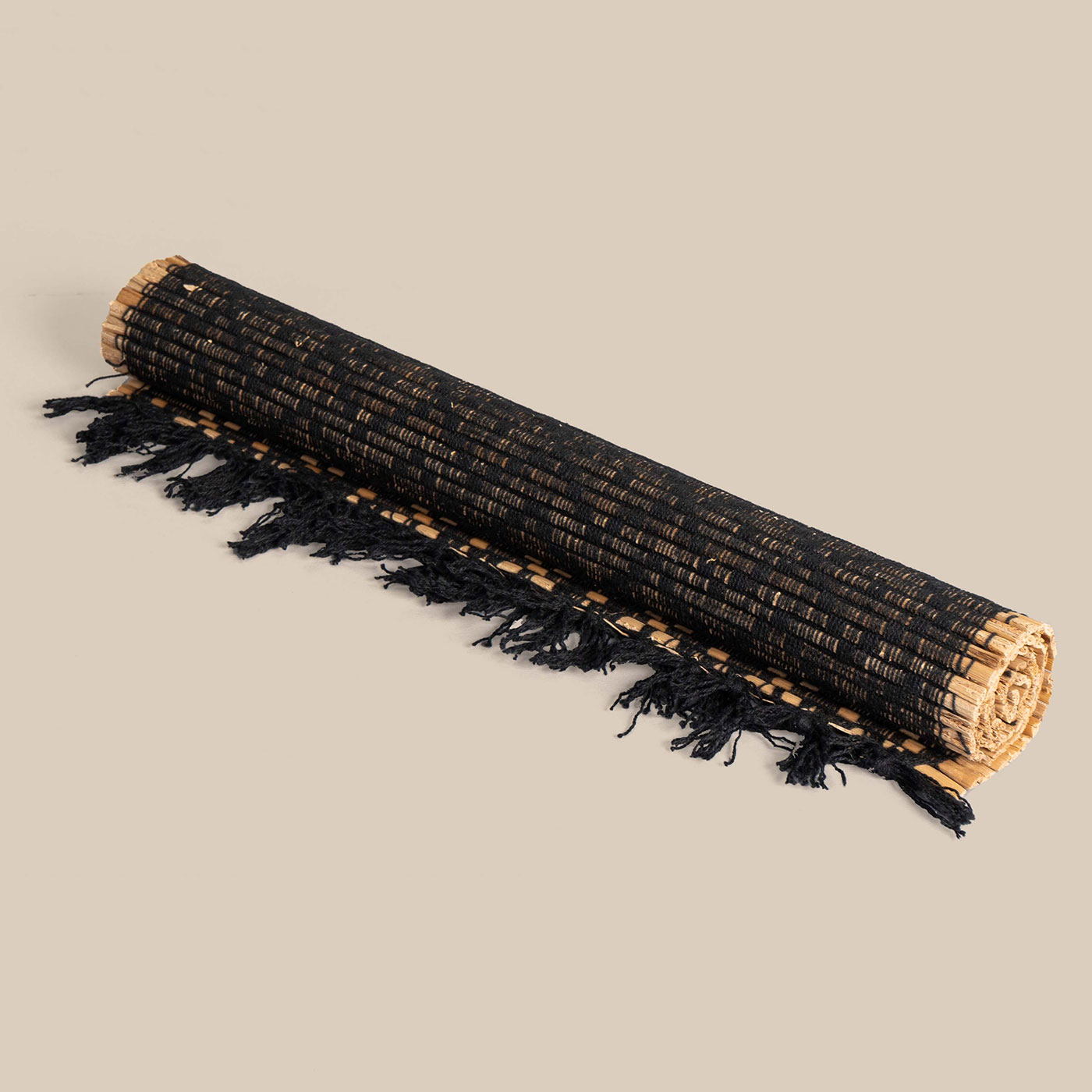 This black and ecru placemat brings timeless contrast with a touch of warmth through its classic diamond weave. Crafted from repurposed materials, it elevates any table setting with elegance while embracing sustainability.